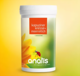 Zutaten: Meerrettichwurzel Pulver, Kapuzinerkresse Pulver, Kapuzinerkresse Extrakt, Liebstöckelwurzel Pulver, Hydroxypropylmethylcellulose (Kapselhülle)
