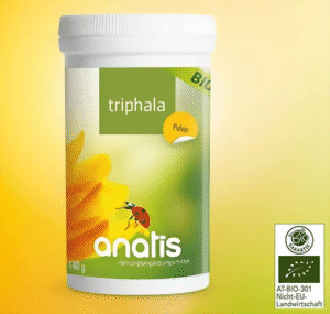Die klassische Ayurveda-Rezeptur Triphala besteht aus drei sehr bitteren Früchten. Man kann sagen, Milliarden Inder seit Tausenden von Jahren nahmen Triphala bereits zu sich. Vor allem abends und zusammen mit Ballaststoffen. Triphala soll die drei Doshas Vata, Pitta und Kapha in Ausgleich bringen.